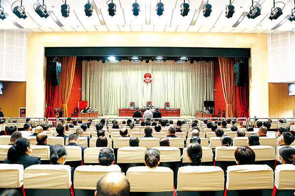 圖為4月21日,蘭州市中級(jí)人民法院開庭審理柳豐德受賄、行賄案。 (蘭州市中級(jí)人民法院供圖)