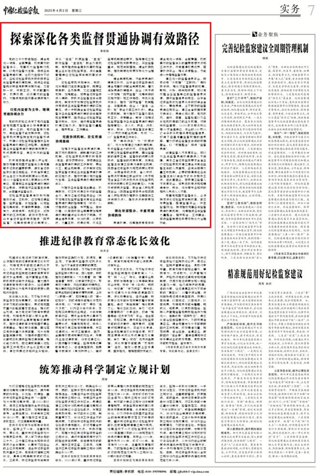 中國(guó)紀(jì)檢監(jiān)察報(bào):探索深化各類監(jiān)督貫通協(xié)調(diào)有效路徑