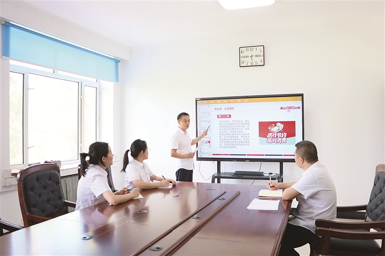 黑龍江省大興安嶺地區(qū)紀(jì)委監(jiān)委貫徹帶頭過緊日子要求,通過常態(tài)化教育機(jī)制推動(dòng)紀(jì)檢監(jiān)察干部將勤儉理念融入日常工作和生活。圖為大興安嶺地區(qū)新林區(qū)紀(jì)檢監(jiān)察干部圍繞厲行節(jié)約、反對(duì)浪費(fèi)開展學(xué)習(xí)。王麗 攝