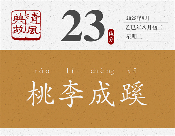 “桃李不言,下自成蹊”雖為俗語,但與孔子的話不謀而合。不令而行者,不言而成蹊者也。“桃李不言”呼應(yīng)“不能道辭”,“下自成蹊”呼應(yīng)“皆為盡哀”。“此言雖小,可以喻大”是說,這句俗語雖然言淺意近,卻能用它來說明許多大道理。后人遂以“桃李不言,下自成蹊”或“桃李成蹊”為典,比喻一個人只要品德高尚,行為端正,自然會贏得人們的愛戴和追隨。辛棄疾詞《一剪梅·游蔣山呈葉丞相》:“多情山鳥不須啼。桃李不言,下自成蹊。”南朝齊人謝朓詩《和徐都曹出新亭渚詩》:“桃李成蹊徑,桑榆蔭道周。”