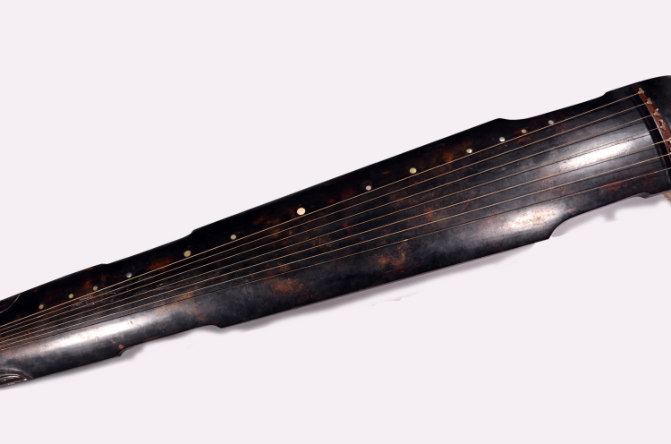 明代,通長124.5厘米,琴額寬17.3厘米,琴肩寬21厘米,琴尾寬13厘米,形制為仲尼式,琴面為梧桐木,通體呈深栗色。護軫為卷角飾,弦軫為紅木制成。琴腹龍池上方鐫刻篆書詩一首“空山無人,鳴泉幽咽,歸從舒音,淖猨司鈴”,共16字,落款為“鄭世子”。池下沼上鐫刻方形篆書印章一方,為“鄭學圖書”??谈箍?ldquo;大明萬歷十年歲次壬午二月吉旦,鄭世子載堉按太簇尺造”。朱載堉是明代杰出律學家、歷算家,首創(chuàng) “十二平均律”,在音樂、數(shù)學、天文等領域均有重大建樹。