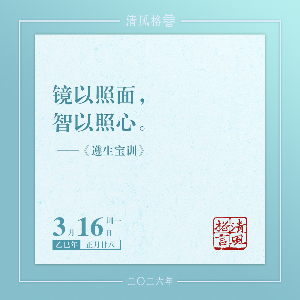 “鏡以照面,智以照心”,鏡明則垢不染,容貌便看得清楚;智明則心不染,遇事則看得透徹。事在人為,人以智行,智行則客觀、審慎,能夠看透本質(zhì),明辨是非曲直。像吳隱之這樣“處貪泉而覺爽”,一個(gè)真正明智的人,內(nèi)心擁有純凈與清醒,是不會(huì)被欲望和雜念所迷惑的。智明則心能定,心定則萬事明。