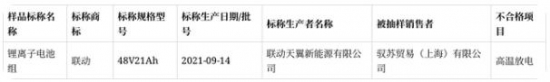 2021年上海市電動自行車鋰離子電池產(chǎn)品質(zhì)量監(jiān)督抽查不合格產(chǎn)品