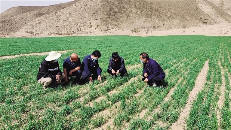 近日,記者在白崖、豐水村看到,農(nóng)業(yè)技術(shù)人員正實地查看胡麻、玉米等新品種示范區(qū)種植田塊,并向農(nóng)戶了解生產(chǎn)與管理情況,現(xiàn)場指導(dǎo)田地管理。