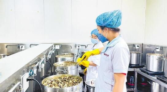 盛夏時節(jié)暑熱難耐,佛慈養(yǎng)生堂煎藥中心的室內(nèi)溫度更是高達(dá)43攝氏度。浸泡、熬制、清湯、打包……煎藥師們一絲不茍,嚴(yán)格按照要求完成每一道工序。