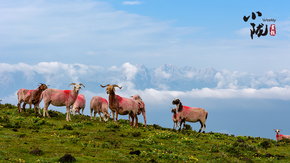 山頂被譽為草原白珍珠的天祝白牦牛和羊群云中漫步,云下蔥蘢牧場若隱若現(xiàn),一幅水墨山水畫卷徐徐呈現(xiàn)在眼前。