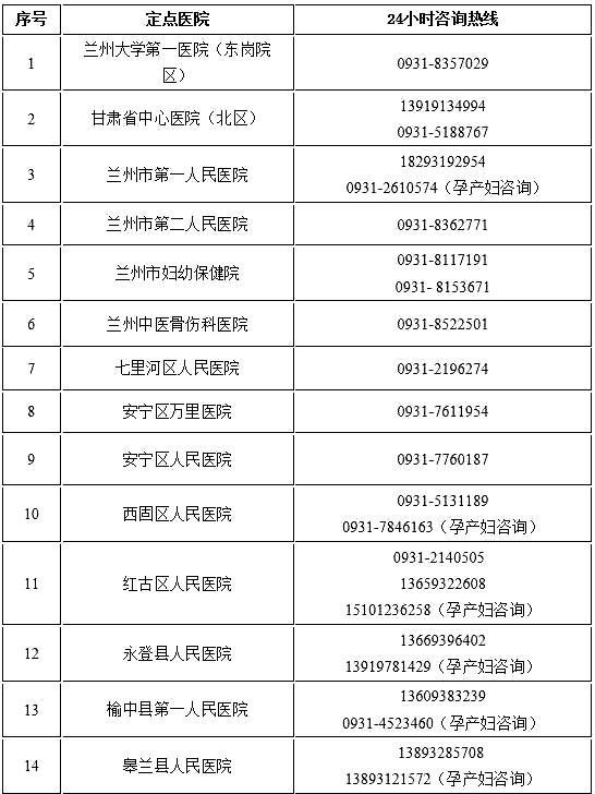 •蘭州市域“非綠碼”定點醫(yī)院24小時咨詢熱線•