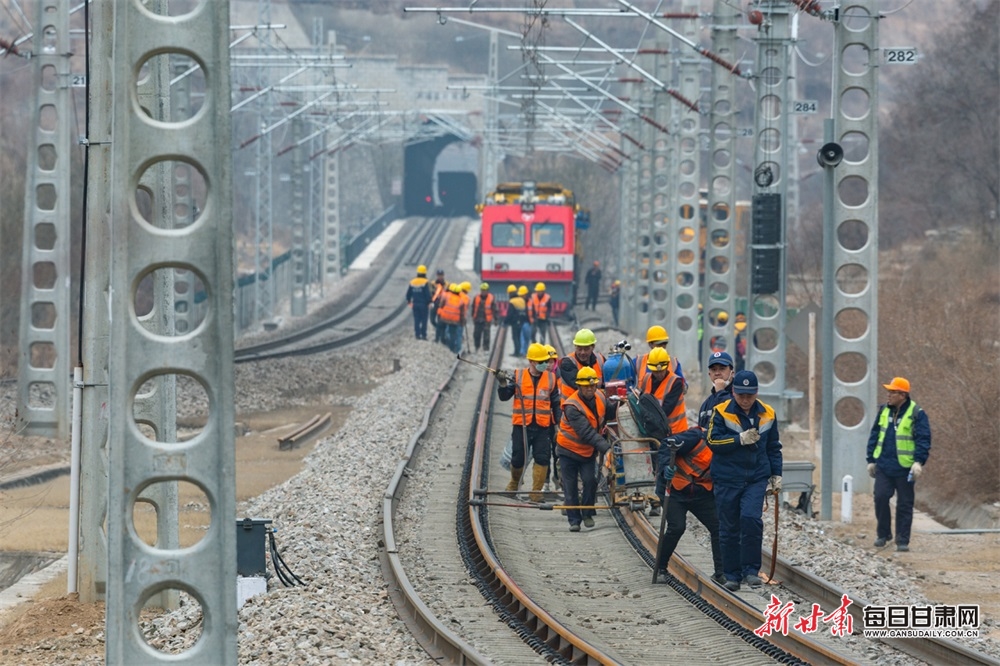 近日,在隴海鐵路區(qū)間,蘭州鐵路局工務(wù)機械段700名干部職工奔赴各施工區(qū)段,在不影響線路運行的情況下,抓緊時間對線路進行換軌施工。本次施工預(yù)計3月底完工。