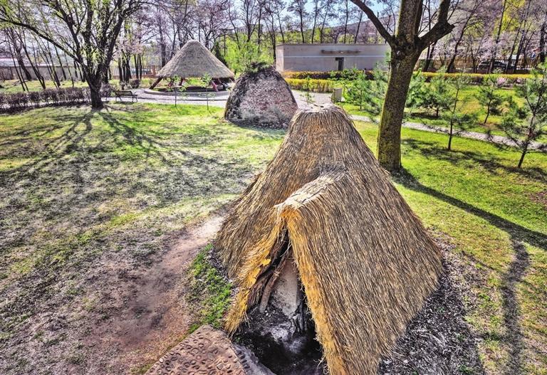 大地灣二期遺址半地穴式房址,地面部分為復(fù)原。 汝 林