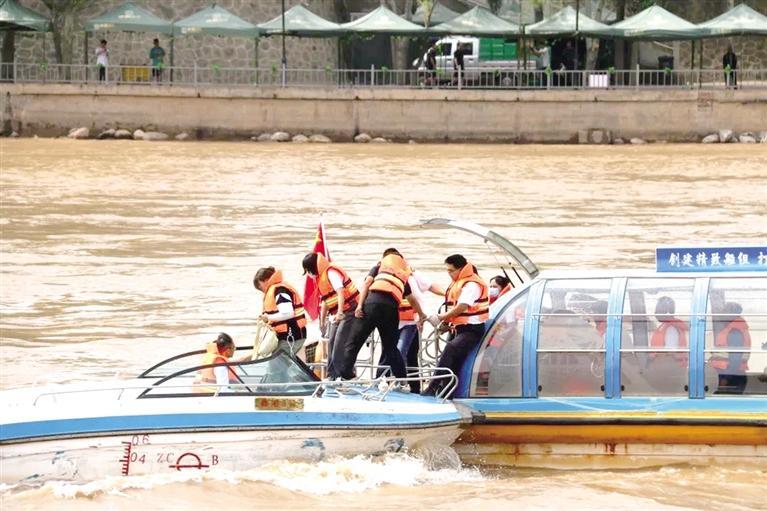 中國甘肅網(wǎng)6月21日訊 據(jù)蘭州晚報報道 近日,由蘭州市交通運輸委員會主辦,蘭州水運集團有限公司承辦的2023年水上交通應急演練活動在蘭州市白塔山碼頭水域順利開展。