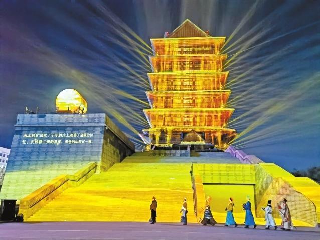黃河樓燈光秀。奔流新聞·蘭州晨報(bào)記者 熊園 攝