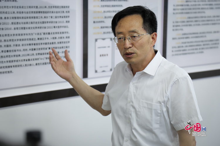 7月31日,西北師范大學(xué)歷史文化學(xué)院教授李迎春接受“簡(jiǎn)牘中國(guó)”媒體團(tuán)的采訪。中國(guó)網(wǎng)記者 鄭偉 攝