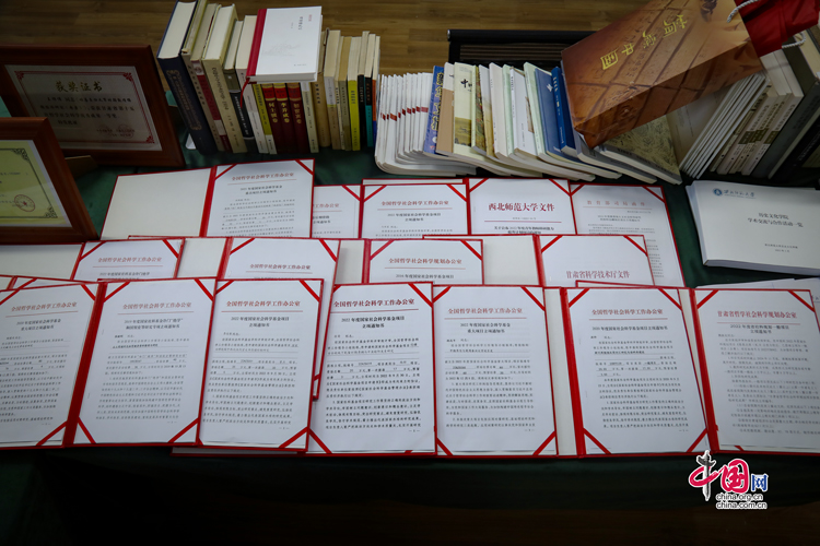 西北師范大學(xué)簡(jiǎn)牘學(xué)學(xué)科建設(shè)部分資料(拍攝于7月31日)。中國(guó)網(wǎng)記者 鄭偉 攝