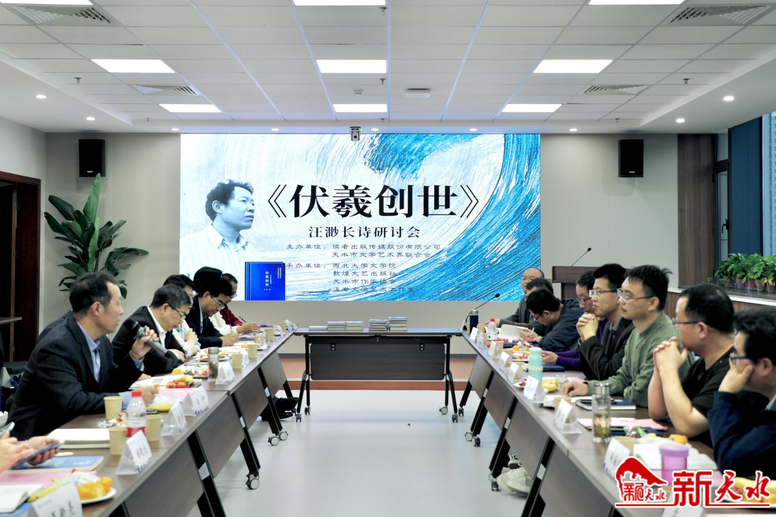 新天水訊【記者楊華 陳光毅】10月14日,天水詩(shī)人汪渺長(zhǎng)詩(shī)《伏羲創(chuàng)世》研討會(huì)在西北大學(xué)文學(xué)院舉辦。本次研討會(huì)由讀者出版?zhèn)髅焦煞萦邢薰尽⑻焖形穆?lián)主辦,西北大學(xué)文學(xué)院、敦煌文藝出版社、天水市作協(xié)、汪渺文學(xué)藝術(shù)工作室承辦。