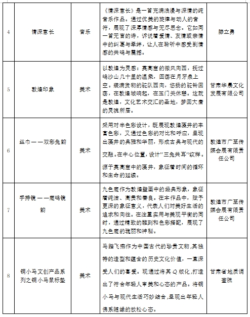 2024年6月,甘肅版權(quán)綜合服務平臺共完成省內(nèi)作品登記804件,其中文字作品235件、美術(shù)作品469件、攝影作品9件、音樂作品39件、視聽作品20件、口述作品8件、其他作品24件。經(jīng)認真組織篩選,并經(jīng)著作權(quán)人同意,現(xiàn)公開推薦以下10件優(yōu)秀作品,歡迎社會各界交流合作。(聯(lián)系方式:0931-8270727)