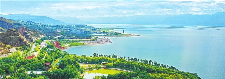 8月底,記者驅(qū)車從永靖縣城出發(fā),沿環(huán)湖北路一路向西直達向陽碼頭。對岸是臨夏縣蓮花碼頭,中間是碧波蕩漾的劉家峽水庫。