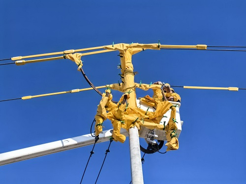 作業(yè)現(xiàn)場(chǎng),嚴(yán)寒逼人,但準(zhǔn)備井然有序。該公司相關(guān)負(fù)責(zé)人提前組織現(xiàn)場(chǎng)勘查,制定“三措一案”,反復(fù)預(yù)演操作流程。絕緣斗臂車、絕緣手套、遮蔽毯等器具逐一檢查確認(rèn),確保萬(wàn)無(wú)一失。上午11時(shí)10分,兩名作業(yè)人員穿戴好絕緣防護(hù)裝備,乘絕緣斗臂車緩緩升至12米高空,逐步對(duì)導(dǎo)線、橫擔(dān)、桿塔等帶電部位進(jìn)行絕緣遮蔽,構(gòu)建起安全作業(yè)屏障。隨后,他們依照標(biāo)準(zhǔn)化作業(yè)指導(dǎo),沉穩(wěn)細(xì)致地完成三相引流線的搭接工作。
