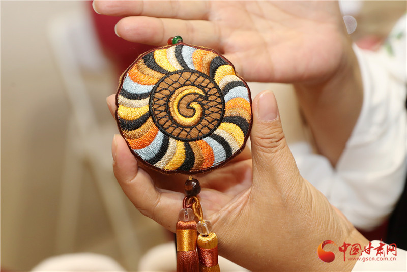 真正讓她想“給香包加點(diǎn)新東西”,是一次省博看展的觸動(dòng)。站在馬家窯彩陶罐前,她盯著罐身流轉(zhuǎn)的旋渦紋出了神:“這么好看的紋路,繡在香包上多妙?”后來(lái)去敦煌,莫高窟里飛天的飄帶、藻井的繁復(fù)花紋更讓她挪不開(kāi)腳?;貋?lái)的路上,一個(gè)念頭愈發(fā)清晰:要讓博物館里的文物“活”在香包里,讓老手藝沾染上“文化氣”。
