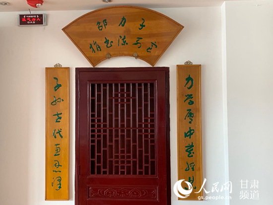 天水市圖書館坐落在藉河之濱,臨流水而擁綠樹,環(huán)境清幽。那是一個(gè)雙休日,天氣晴好,記者懷著好奇、敬仰的心情,走樓梯登上了圖書館四樓。特藏室門口上方掛著“邵力子捐書陳列室”扇形木制匾額,左右兩邊掛著木制對聯(lián)“力學(xué)廬中藏經(jīng)典,子孫世代惠恩澤”,是集于右任的字。木料呈淡黃色,典雅而洋溢書香之氣。為了滿足記者的愿望,特藏室負(fù)責(zé)人李東暉犧牲了休息時(shí)間,熱情地接待我們并進(jìn)行認(rèn)真講解。
