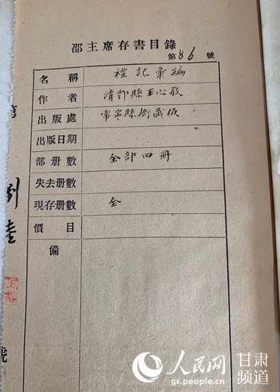“力學(xué)廬藏書”為何保存在天水市?1937年抗日戰(zhàn)爭全面爆發(fā),日機(jī)輪番轟炸西安等城市,主政甘肅、陜西6年間自己節(jié)儉日常生活開支所搜購、珍藏的大批珍貴圖書怎樣才能免于戰(zhàn)火?邵力子先生十分焦慮。民國年間著名人士鄧寶珊、馮國瑞多次向邵力子先生“游說”,說明他們的家鄉(xiāng)天水市人文氣息濃厚、又地處西北一隅,屬抗戰(zhàn)后方,藏書環(huán)境較為安全,希望“以之捐贈(zèng)天水,建館而公諸世”。經(jīng)過慎重考慮,邵力子先生決定將自己在西安的全部“力學(xué)廬藏書”運(yùn)往天水,并由好友、著名學(xué)者馮國瑞負(fù)責(zé)接收、轉(zhuǎn)運(yùn)。在那戰(zhàn)火紛飛的年代,要把幾十箱、數(shù)萬冊藏書從西安運(yùn)到天水,確非易事。李東暉說,在當(dāng)時(shí)陜西省政府主席及秘書長、天水縣長及教育局長等人的協(xié)助下,歷經(jīng)周折、分三次才將這批珍藏轉(zhuǎn)運(yùn)成功,當(dāng)時(shí)雇用鹽商的牲口、沿途由鄧寶珊將軍派部隊(duì)護(hù)送。