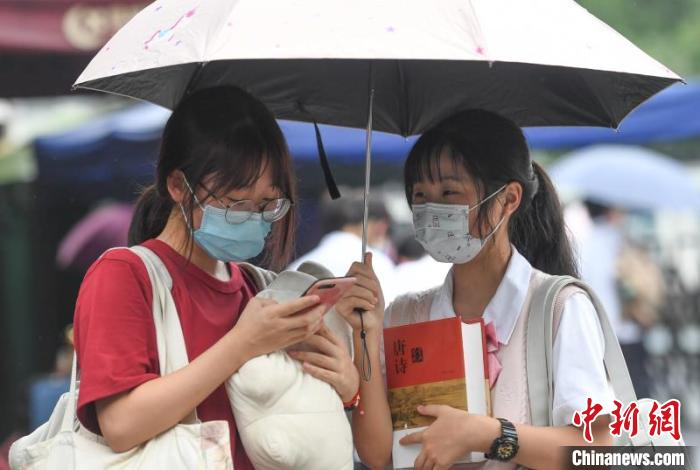 浙江高考結(jié)束首日,在杭州學軍中學門口,考生抱著復習資料準備回家?!⊥鮿偂z