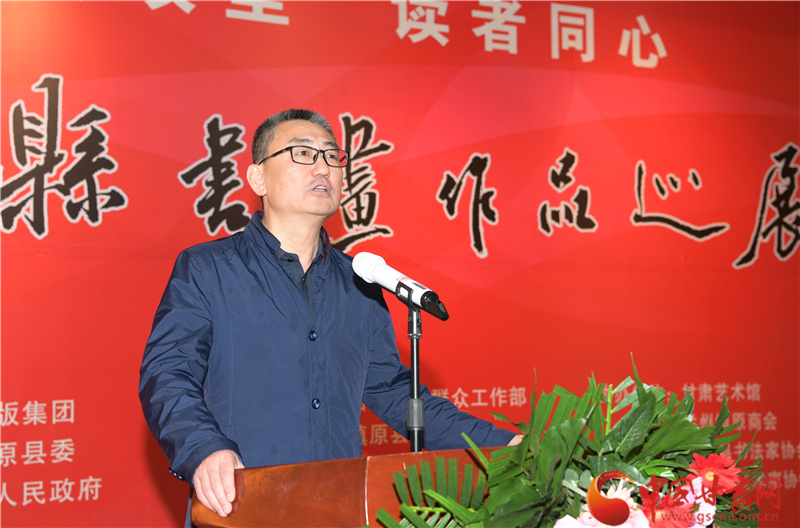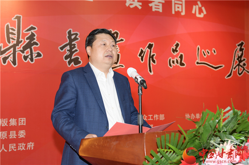 劉永升在致辭中說,鎮(zhèn)原是中國書法之鄉(xiāng),讀者是甘肅文化名片,企縣因扶貧而結(jié)緣,因文化而牽手。自2017年定點(diǎn)幫扶鎮(zhèn)原以來,讀者出版集團(tuán)著力實(shí)施了一批“看得見、摸得著、留得下、有成效”的好項(xiàng)目,探索出一條富有“讀者”特色的幫扶路子。特別是立足文化企業(yè)定位,堅(jiān)持扶智扶志,通過開展勞動(dòng)技能培訓(xùn)、幫助改善教育條件、推介宣傳地方資源、建設(shè)“讀者鄉(xiāng)村文化驛站”等一系列卓有成效的工作,切實(shí)打好“文化扶貧”牌,既堅(jiān)定了廣大群眾戰(zhàn)勝貧困的信心和決心,更激發(fā)了貧困群眾依靠雙手、勤勞致富的積極性、主動(dòng)性。此次與鎮(zhèn)原縣聯(lián)合舉辦書畫巡展,是開展文化扶貧、助力書香社會(huì)建設(shè)的務(wù)實(shí)之舉,也是提升“文化鎮(zhèn)原”影響力、加快地方文化產(chǎn)業(yè)發(fā)展的積極行動(dòng),更是提高貧困群眾文化素質(zhì)、振奮群眾精神風(fēng)貌的重要舉措。