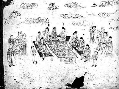 唐代壁畫《宴飲圖》?。ǘ鼗湍呖撸?/font>
