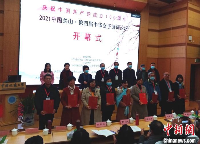 中新網(wǎng)武漢3月21日電 (記者 艾啟平)2021中國關(guān)山·第四屆中華女子詩詞論壇21日在中國地質(zhì)大學(xué)(武漢)開幕,全國各地嘉賓、詩詞界人士以及詩詞愛好者等200余人出席。中國古典文學(xué)研究專家葉嘉瑩通過視頻為論壇發(fā)來賀詞。