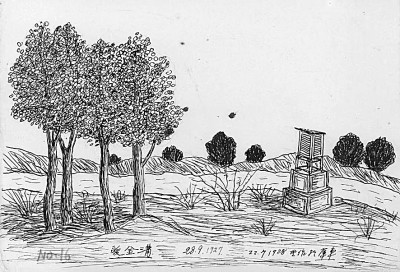 劉衍淮考察途中的畫作《額濟(jì)納河畔的觀測(cè)站》 (1927年9月28日)