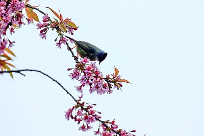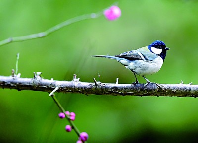 湖南省龍山縣,花兒開放,引來(lái)小鳥“鬧春戲花”。新華社發(fā)