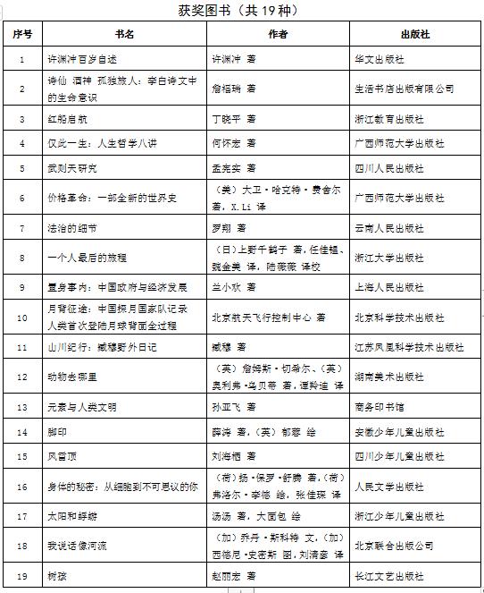 第十七屆文津圖書獎評選結(jié)果(附名單)