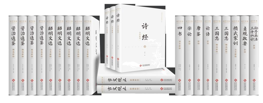 叢書第一輯共12種23冊,包括《四書讀本新繹》《詩經(jīng)全本新繹(全三卷)》《昭明文選全本新繹(全五卷)》《古文觀止新編新繹(上下)》《唐鑒新繹》《宋論新繹》《論語新繹》《顏氏家訓(xùn)全本新繹》《資治通鑒精選新繹(全四卷)》《三國志精選新繹(上下)》《孫子兵法·三十六計(jì)新繹》《貞觀政要新繹》,內(nèi)容涉及政治、哲學(xué)、文學(xué)、歷史、軍事等。