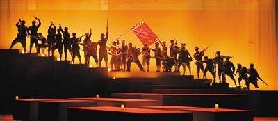 類似這樣耐人尋味、畫龍點(diǎn)睛的改編還有許多,比如原著中的“小彭”變成了“小火柴”,代表了點(diǎn)燃的微火和一種希望;“答答滴滴滴,滴滴滴答答”不僅是符號化的電碼,而且成為了最好的祝福,一句臺詞蘊(yùn)含多層含義,滿含深情。從“最后的電波”到“鐵流東進(jìn)”,更展現(xiàn)了一種大歷史觀、大時代觀,真正符合立體的舞臺呈現(xiàn)。
