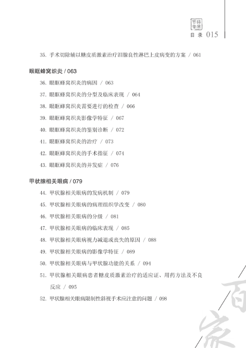 全書(shū)主要介紹了常見(jiàn)眼眶炎性疾病及甲狀腺相關(guān)眼病,從病因、病理、臨床表現(xiàn)、輔助檢查、診斷、鑒別診斷、治療及預(yù)后等多個(gè)方面對(duì)其加以敘述。本書(shū)條理清晰,簡(jiǎn)明扼要,理論性強(qiáng),有較強(qiáng)的臨床實(shí)用性和指導(dǎo)意義。