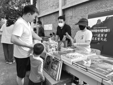 中關(guān)村圖書大廈攜手西郊機(jī)場居民委員會走進(jìn)西郊機(jī)場家屬區(qū),開展“八一建軍節(jié) 品書香文化”主題宣傳活動。