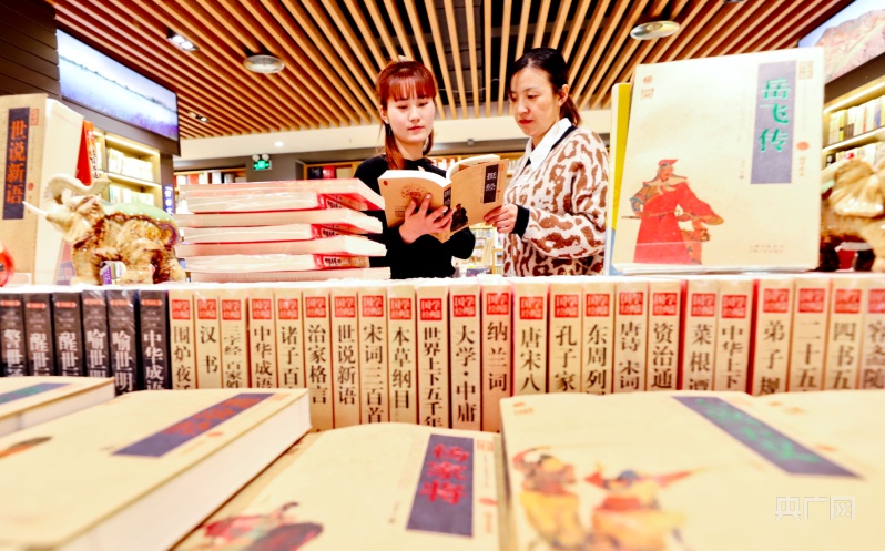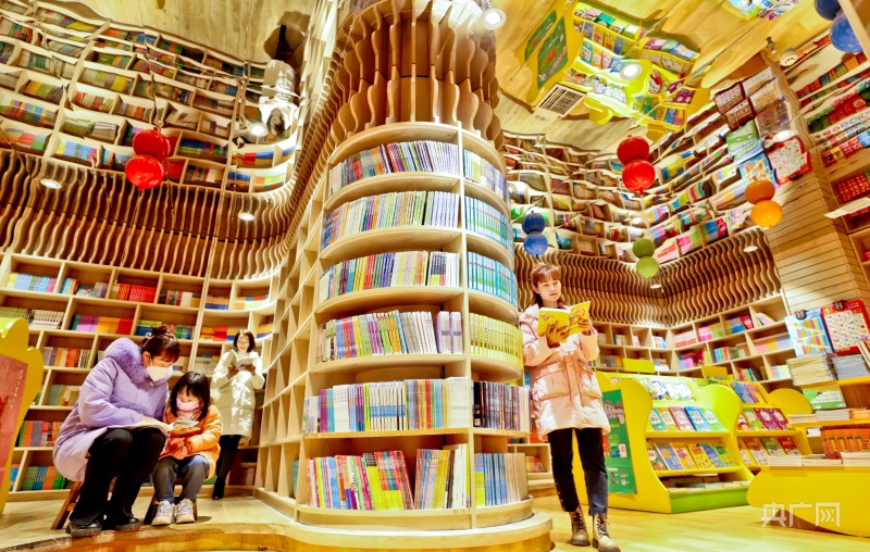 1月23日,市民帶著孩子在甘肅張掖錦華書城讀書、選書、購書。(央廣網(wǎng)發(fā) 王將 攝)