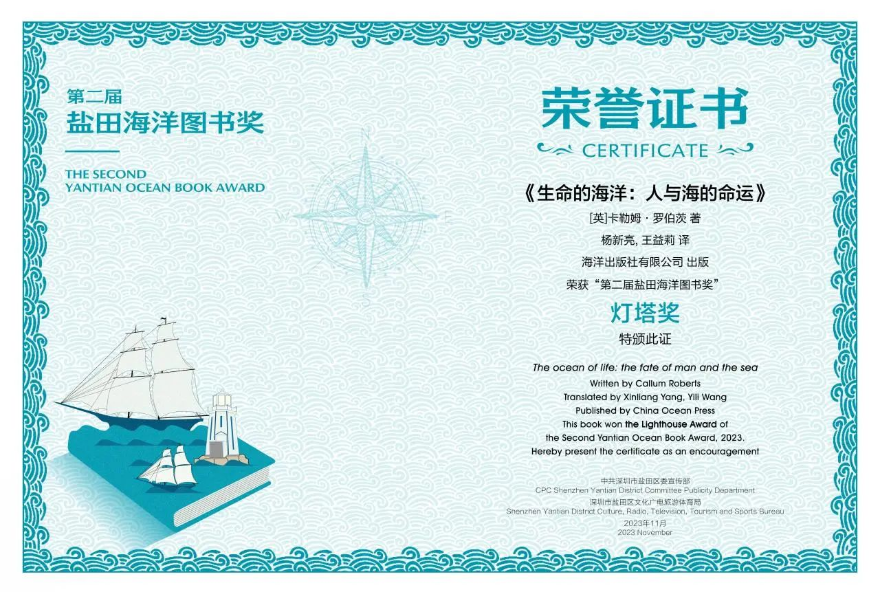 海洋出版社有限公司出版的《生命的海洋:人與海的命運(yùn)》 于2023年11月獲第二屆“鹽田海洋圖書(shū)獎(jiǎng)”燈塔獎(jiǎng)。