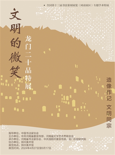 河南省鄭州美術(shù)館(新館)“文明的微笑——龍門(mén)二十品特展”海報(bào)。