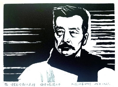 在幾代中國(guó)人的意識(shí)深處,魯迅就是橫眉冷對(duì)的“硬骨頭”。大眾最為熟悉的當(dāng)是1961年趙延年所刻《魯迅像》:脖圍方巾、頭立豎發(fā)、唇覆濃須、臉貼瘦頰,在黑暗的天底下怒視遠(yuǎn)方。這幅木刻以魯迅慶祝五十生辰所攝的那張端莊嚴(yán)肅的照片為底本,創(chuàng)作時(shí)的原名為《橫眉冷對(duì)千夫指 俯首甘為孺子?!?,該名出自魯迅《自嘲》詩(shī)。以此為題,同毛澤東在延安文藝座談會(huì)上號(hào)召?gòu)V大文藝工作者以此詩(shī)句為座右銘密不可分。同期美術(shù)家以此為題的作品甚多,而趙延年對(duì)木刻語(yǔ)言的運(yùn)用無(wú)疑是最成功的。不過(guò)在這幅作品之前,美術(shù)家刀筆之下的魯迅遠(yuǎn)不止這副模樣。