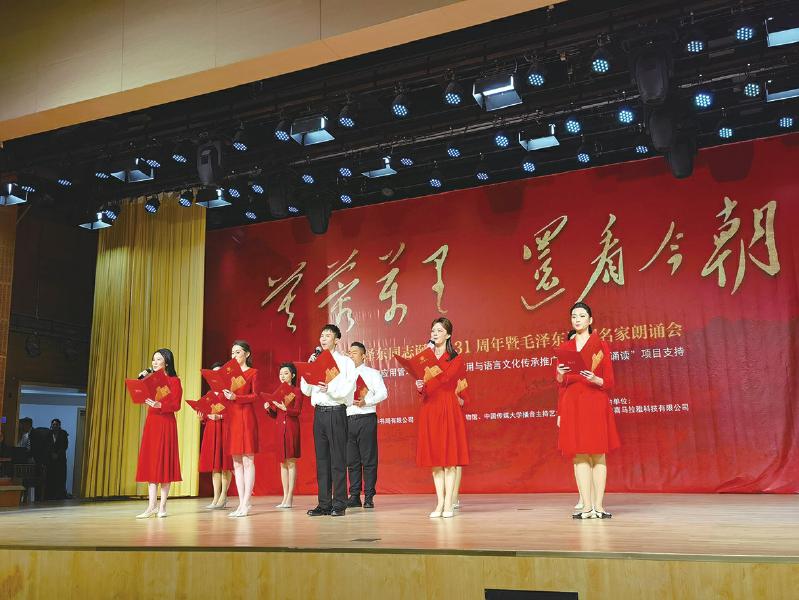 朗誦會上,中國傳媒大學(xué)學(xué)生誦讀毛澤東同志詞作《沁園春·長沙》。 本報記者 章紅雨 攝