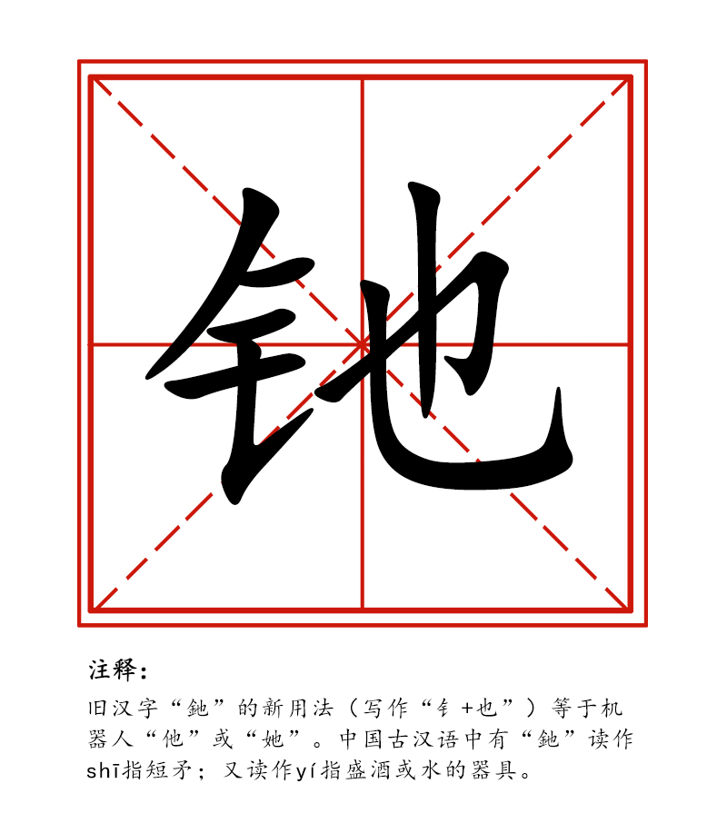中國甘肅網(wǎng)1月23日訊 近日,范鵬教授通過朋友圈為舊漢字“釶”發(fā)明了一種新用法,寫作“钅+也”,將其定義為等同于機(jī)器人的“他”或“她”。