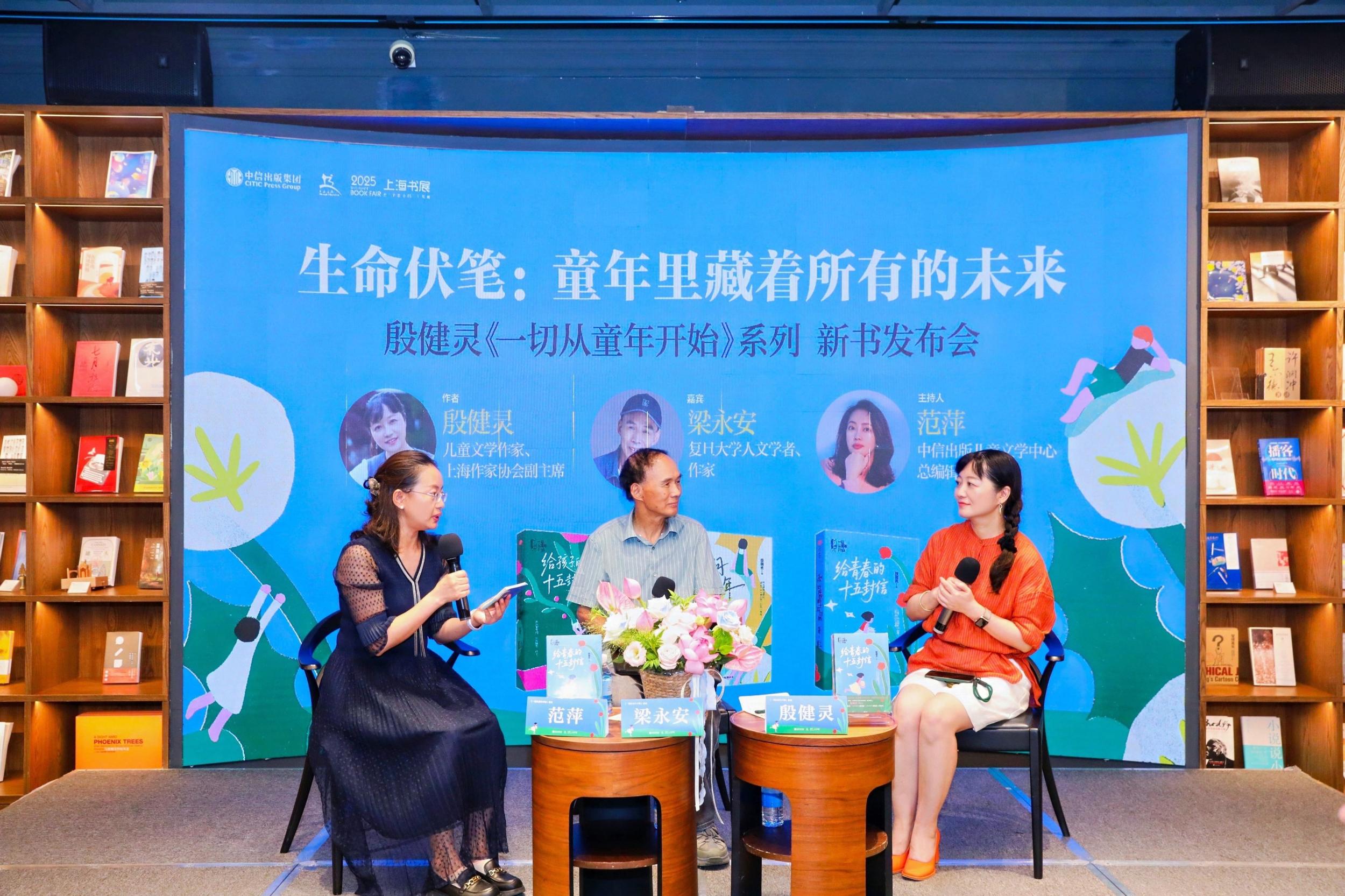 中國(guó)青年報(bào)客戶端訊(中青報(bào)·中青網(wǎng)記者 李丹萍)8月15日,在2025上海書展期間,著名兒童文學(xué)作家、“成長(zhǎng)擺渡人”殷健靈攜《一切從童年開(kāi)始》系列新書與讀者見(jiàn)面。本次活動(dòng)以“生命伏筆:童年里藏著所有的未來(lái)”為主題,由中信出版集團(tuán)聯(lián)合上海書展舉辦,特邀復(fù)旦大學(xué)人文學(xué)者、作家梁永安作為對(duì)話嘉賓,和殷健靈共同開(kāi)啟一場(chǎng)文學(xué)與思想的碰撞。