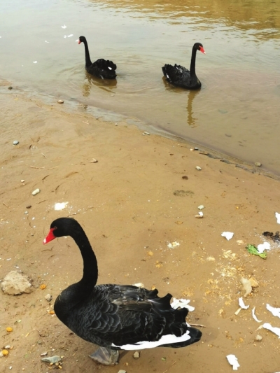 “黑天鵝還是第一次看到,3只都很漂亮,吸引了好多市民觀看。”3月25日下午,81歲的退休職工張?bào)w成向本報(bào)新聞熱線4286666反映,這3只黑天鵝在西固的黃河邊安“家”已有好長(zhǎng)時(shí)間了,每天都有愛護(hù)動(dòng)物的市民前來(lái)給它們喂食。不管這些是野生還是家養(yǎng)黑天鵝,希望有關(guān)部門保護(hù)起來(lái),以免因喂食發(fā)生意外。