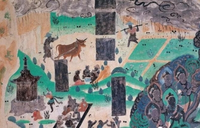 在現(xiàn)存的敦煌壁畫(huà)中,則將歷史上清明節(jié)的活動(dòng)盛況形象地展現(xiàn)在了現(xiàn)代人的面前。早在秦漢年間,二十四節(jié)氣系統(tǒng)就已經(jīng)形成,距今已有兩千多年的歷史。西漢劉安所著《淮南子·天文訓(xùn)》中寫(xiě)到“春分后十五日,斗指乙,則清明風(fēng)至”;宋代陳元靚在《歲時(shí)廣記》中進(jìn)一步解釋了“清明”一詞:“清明者,謂物生清凈明潔”;到了唐代,寒食節(jié)就與清明節(jié)并在一起了,唐玄宗于開(kāi)元二十年(公元732年)詔令天下“寒食上墓”,并列為當(dāng)時(shí)“五禮”之一?!杜f唐書(shū)》記載:“寒食上墓,禮往無(wú)文,近代相沿,寖以成俗,士庶之家,宜許上墓,編為五禮,永為常式”;莫高窟清明踏青圖敦煌文獻(xiàn)《寒食篇》記載:“花場(chǎng)共斗汝南雞,春游遍在東郊道。千金寶帳綴流蘇,簸瓊還坐錦筵鋪。莫愁光景重窗暗,自有金瓶照乘珠。心移向者游遨處,乘舟欲騁凌波步。池中靈水白鵰飛,樹(shù)下拋球彩鶯去……”依據(jù)詩(shī)文推測(cè),寒食節(jié)除了打馬球,還有蕩秋千、春游、騎馬、斗雞、拋彩球等一系列娛樂(lè)活動(dòng),處處都是鶯歌燕舞、欣欣向榮的節(jié)日氣氛。