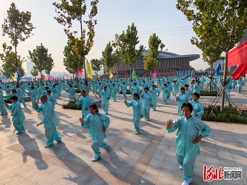 9月20日,邢臺(tái)市第四屆旅發(fā)大會(huì)進(jìn)行觀摩參觀活動(dòng)。圖為體育公園廣場(chǎng)上的太極拳表演 杜船攝