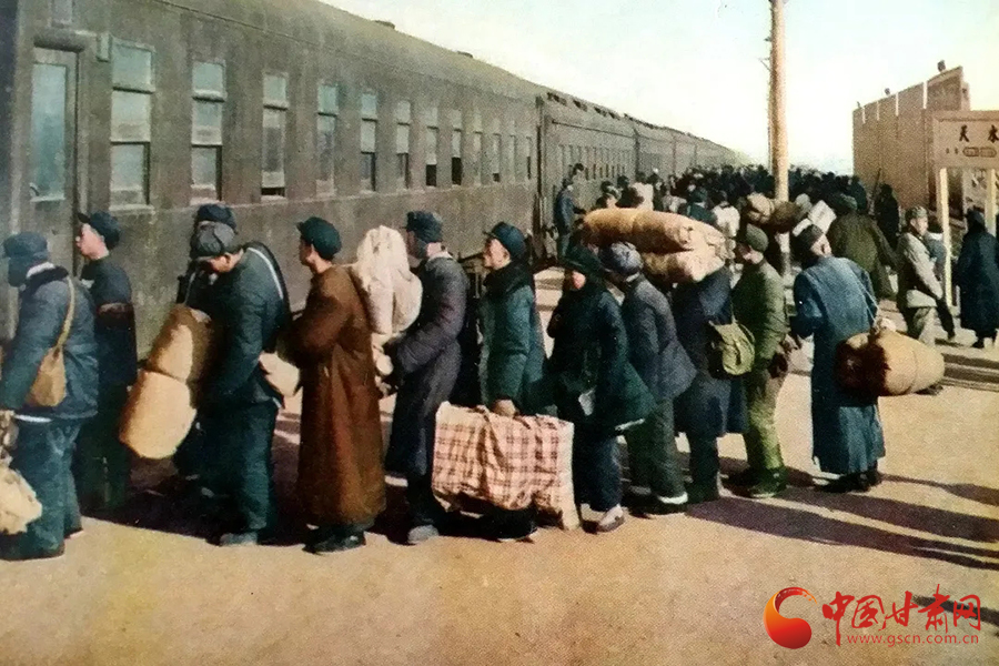 中國鐵路蘭州局集團有限公司紅色教育基地陳列的推水車、鐵皮水壺和懸掛的老照片,透露出彼時春運出行情況。
