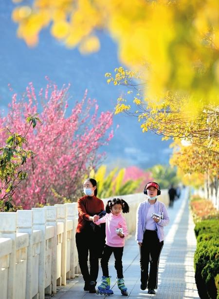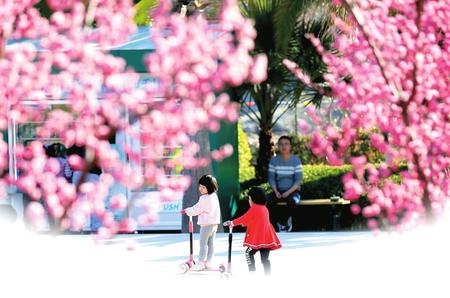 開學(xué)前夕,孩子們?cè)诹G花明、青草萌芽的市區(qū)濱江濕地公園里擁抱春色,告別寒假。映襯著孩子們活潑的身影,玉蘭、紫葉李、杏花、櫻花盡情綻放,到處一派春意盎然,透著勃勃生機(jī)。記者 冉創(chuàng)昌 攝影報(bào)道