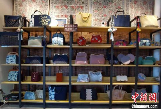 圖為祁輝純手工刺繡制作的時(shí)尚包展示。 張婧 攝