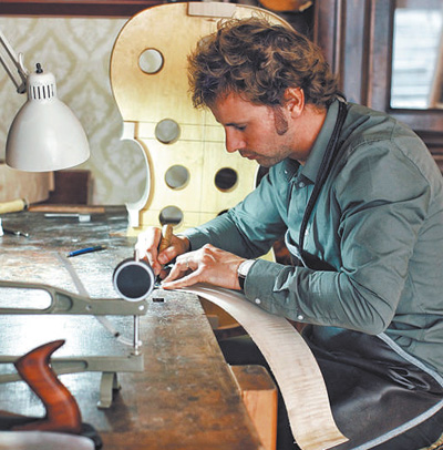選材、拼板、刮板、合琴……在古樸的工作室里,費(fèi)隆認(rèn)真地打磨每一把提琴。手工制作一把提琴要經(jīng)過近10道工序,每道工序又有諸多細(xì)節(jié)。即便是一位熟練的制琴師,打造一把小提琴也要花費(fèi)200多個(gè)小時(shí)。像費(fèi)隆這樣的提琴工作室在克雷莫納市有超過150家,制琴師以手工方法制造質(zhì)量上乘的提琴,來此買琴的商家和藝術(shù)家不計(jì)其數(shù)。