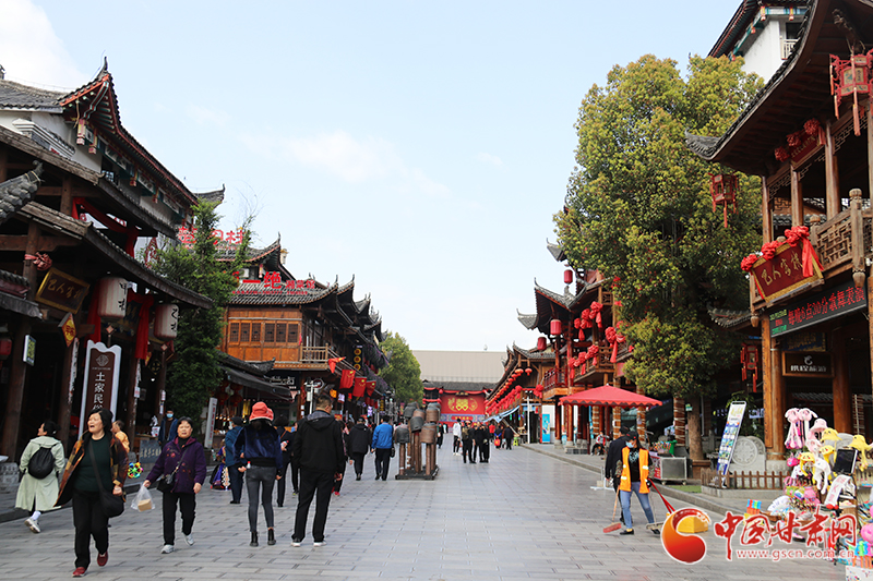 游客在恩施土家土司城游覽